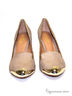 Роскошные женские туфли KLIMINI прекрасно дополнят ваш элегантный образ. Модель выполнена из натурального нубука бежевого цвета. Заостренный нос украшен вставкой из металла серебристого цвета. Внутренняя отделка из натуральной кожи обеспечит комфортную эксплуатацию.Материал подошвы: тунит.Высота каблука ок.9 см.Рекомендуем подбирать обувь больше на размер.Эта обувь произведена в Бразилии.