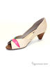 Туфли с открытым мысом KLIMINI созданы для леди, выбирающих стильные и яркие вещи. Модель бежевого цвета с цветными вставками впереди выполнена из натуральной кожи. Открытый носок способствуют дополнительной вентиляции воздуха. Мягкая подкладка и стелька – из натуральной кожи. Устойчивый каблук делает походку грациозной, а осанку – статной.Высота каблука ок 5,3 см.Рекомендуем подбирать обувь больше на размер.Произведено в Бразилии.