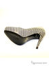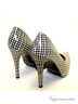 Довольно лаконичный верх модели исполнен из натуральной кожи с монохромным узором в бело-черной гамме. Кожаная стелька украшена принтом с логотипом бренда. Высокий тонкий каблук компенсируется небольшой скрытой платформой.Подошва:тунит.Высота каблука 11,5 см.Рекомендуем подбирать на размер больше.Произведено в Бразилии.