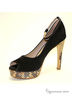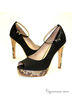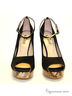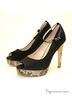 Необычные, стильные туфли с открытым мыском и на устойчивом каблуке. Изделие украшено красивым принтом под "змею".Материал верха - нубук черного цвета.Материал подкладки - натуральная кожа. Высота каблука ок. 12 см.,высота плато ок.2.5 см.Подошва:тунит.Рекомендуем подбирать обувь больше на размер.Произведено в Бразилии.