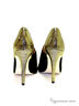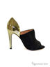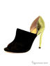 Восхитительные женские туфли прекрасно подчеркнут красоту ваших ног. Модель выполнена из нубука черного цвета и золотистой кожи. Открытый носок выглядит очень стильно. Внутренняя отделка исполнена из мягкой кожи. Стелька дополнена принтом с названием бренда. Высота каблука ок.10 см.Материал подошвы: тунит.Рекомендуем подбирать обувь больше на размер.Эта обувь произведена в Бразилии.