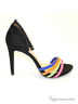 Модель на высоком элегантном каблуке с закрытой пяткой и застежкой на пряжку, располагающуюся на ремешке вокруг щиколотки.Изделие выполнено из множества разноцветных ремешков. Отличный вариант как для повседневного использования, так и на особый случай! Материал верха - нубук.Материал стельки и подклада: натуральная кожа. Высота каблука ок. 10см.Подошва - тунит.Рекомендуем подбирать обувь на размер больше.Произведено в Бразилии.