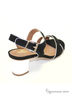 Стильные босоножки от KLIMINI выполнены из нубука в черном цвете и декорирована белым лаковым кантиком. Внутренняя часть полностью выполнена из мягкой кожи. Эффектный контрастный каблук смотрится очень элегантно. Высота каблука ок.4,8 см.Материал подошвы: тунит. Рекомендуем подбирать обувь больше на размер. Эта обувь произведена в Бразилии.