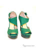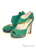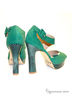 Стильные туфли от Klimini. Модель исполнена из нубука изумрудного цвета с интересной обтяжкой под змею.Тонкий фиксирующий ремешок через подъем дополнен небольшой пряжкой-застежкой.Материал подкладки - натуральная кожа. Высота каблука ок. 12 см.,высота плато ок.2.5 см.Подошва:тунит.Рекомендуем подбирать обувь больше на размер.Произведено в Бразилии.