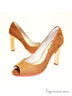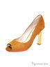 Женские туфли с открытым мысом из нутрального нубука светло-коричневого цвета.Внутри стелька и подкладка из натуральной кожи. Декорированы ярким оранжевым каблуком.Использование гибкой подошвы и дублирование структурированной стельки в передней части обуви делает походку невероятно легкой. Высота каблука ок.9,8 см.Рекомендуем подбирать обувь на размер больше.Произведено в Бразилии.
