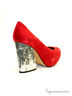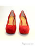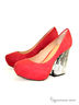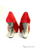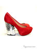 Экстравагантные туфли от KLIMINI .Верх обуви выполнен из натурального нубука красного цвета.Особенности: внутренняя отделка и стелька из натуральной кожи,высокий массивный каблук,отделанный контрасной кожей под черно-белого питона..Высота каблука ок.11см.,высота скрытой платформы ок.3см.Рекомендуем подбирать обувь на размер больше.Произведено в Бразилии.