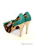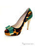 Яркие женские туфли с заостренной формой мыса от Klimini. Довольно интересный верх модели исполнен из комбинации натуральный материалов- короткостриженного меха под лоеопард и нубука изумрудного цвета.Впереди -декор в виде бантика и металлической фарнитурой,сзади - элемент из нубука контрастного цвет.Внутри стелька и подкладка из натуральной кожи. Высокий каблук компенсируется небольшой скрытой платформой.Подошва:тунит.Высота каблука 11,5 см.Рекомендуем подбирать на размер больше.Произведено в Бразилии.