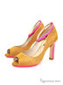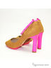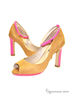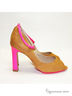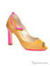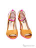 Женские туфли с открытым мысом из нутрального нубука песочно-рыжего цвета.Внутри стелька и подкладка из натуральной кожи. Декорированы яркими и контрастными каблуком и ремешком.Фиксируются в щиколотке на съемный ремешок.Использование гибкой подошвы и дублирование структурированной стельки в передней части обуви делает походку невероятно легкой. Высота каблука ок.9,8 см.Рекомендуем подбирать обувь на размер больше.Произведено в Бразилии.
