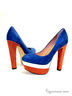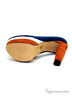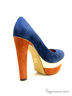 Туфли от KLIMINI станут украшением вашей коллекции. Общий стиль модели выдержан в синем ,белом и оранжевом цветах. Очень женственно смотрится золотистый кант по низу изделия. Высота каблука компенсируется устойчивой платформой. Материал верха: натуральный нубук.Внутренняя отделка из натуральной кожи обеспечит комфортную эксплуатацию. Материал подошвы: тунит.Высота каблука ок.14см,высота плато ок.4 см.Рекомендуем подбирать обувь больше на размер. Эта обувь произведена в Бразилии.