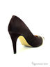 Стильные туфли оригинального дизайна. Изделие выполнено из качественного нубука темно-сливового цвета и декорировано в мысочной части контрастными деталями. Подкладка и стелька : натуральная кожа. Подошва:тунит.Высота каблука ок.9см.Рекомендуем подбирать обувь на размер больше (обувь маломерит).Эта обувь произведена в Бразилии.