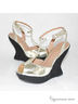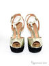 Эффектные боcоножки Klimini - для экстравагантных натур. Дерзкая танкетка необычной формы и золотистая неоновая кожа привнесут в ваш образ сексуальную перчинку. Подкладка и стелька из натуральной кожи обеспечивают создание правильного микроклимата и адаптируются к индивидуальным особенностям стопы. Платформа нивелирует высоту каблучной части. Высота каблука ок.12см.,высота плато ок.3см.Рекомендуем подбирать обувь больше на размер. Произведено в Бразилии.