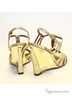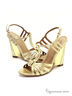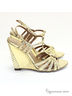 Элегантные босоножки выполнены из высококачественной кожи с принтом под "питона" золотистого цвета. Босоножки абсолютно удобны и устойчивы благодаря танкетке, а интересная отделка на ней придает обуви нотку роскоши. Они одинаково гармонично сочетаются как с вечерними платьями, так и с повседневными джинсовыми шортами. Подкладка и стелька из натуральной кожи обеспечивают оптимальный воздухообмен. Высота каблука ок.10,5см.Рекомендуем подбирать обувь больше на размер. Произведено в Бразилии.