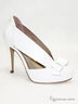 Лаконичные туфли c заостренной формой мыса выполнены из натуральной кожи и лака в классическом белом цвете. Оформлены впереди бантиком, открытые берцы. Кожаная стелька украшена принтом с логотипом бренда. Высокий тонкий каблук компенсируется небольшой скрытой платформой. Может подойти как свадебный вариант обуви. Подошва: тунит.