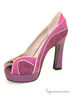 Эффектные и оригинальные женские туфли с открытым мысиком. Выполнен из комбинации разных по цвету нубуков и оформлены металлизированным кантом. Высокий каблук компенсируется невысокой платформой. Внутри - отделка из кожи. Подошва: тунит.
