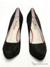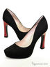 Лаконичные туфли c заостренной формой мыса выполнены из натурального нубука в классическом черном цвете. Кожаная стелька украшена принтом с логотипом бренда. Высокий тонкий каблук компенсируется небольшой скрытой платформой. Подошва: тунит.