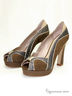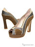 Эффектные и оригинальные женские туфли с открытым мысиком. Выполнен из комбинации разных по цвету нубуков и оформлены металлизированным кантом. Высокий каблук компенсируется невысокой платформой. Внутри - отделка из кожи. Подошва: тунит.