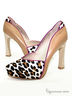 Яркие женские туфли с заостренной формой мыса от Klimini. Довольно интересный верх модели исполнен из комбинации натуральный материалов- короткостриженного меха под леопард и бежевой кожи. Внутри стелька и подкладка из натуральной кожи. Высокий каблук компенсируется небольшой скрытой платформой. Подошва: тунит.