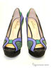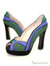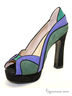 Эффектные и оригинальные женские туфли с открытым мыском. Выполнены из комбинации разных по цвету нубуков и оформлены металлизированным кантом. Высокий каблук компенсируется невысокой платформой. Внутри - отделка из кожи. Подошва: тунит.