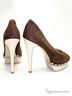 Эпатажные женские туфли на высоком каблуке выполненные из нубука. Впереди - открытый мыс. Оригинальное дизайнерское решение исполнения подошвы. Внутри стелька и подкладка из натуральной кожи. Шпилька и платформа придают походке изящность и грациозность.