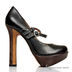 Стильная модель женских туфель на высокой платформе и каблуке. Застегиваются спереди на два тонких ремешка с пряжками.