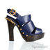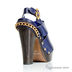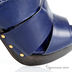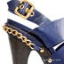 Эффектные босоножки из натуральной кожи. Выполнены из мягкой, безупречно выделанной кожи синего цвета. Декорированы золотистой цепочкой и клепками. Застежка-ремень удобно фиксирует ногу. Подошва проклеена, широкий высокий каблук смотрится особенно выигрышно в сочетании с толстой платформой. К тому же, такая комбинация комфортнее для ноги.