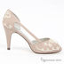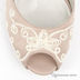 Женские туфли на каблуке с открытым мысом и закрытой пяткой, украшенные узором. Снаружи текстиль, внутри натуральная кожа. Вклеенная стелька, токая подошва / плоская.