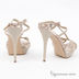 Женские открытые босоножки на высоком каблуке украшенные стразами снаружи текстиль внутри натуральная кожа. Вклеенная стелька.