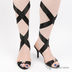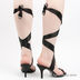 Женские открытые туфли на каблуке с открытым мысом и открыт. С завязками вокруг ноги. Снаружи текстиль, внутри натуральная кожа. Вклеенная стелька.