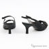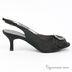 Женские туфли на каблуке с открытым мысом и пяткой, с металлической пряжкой. Снаружи текстиль, внутри натуральная кожа. Стелька вклеенная, подошва тонкая плоская.