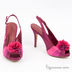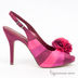 Женские туфли на высоком каблуке с оригинальным цветком, с открытым мысом и пяткой, снаружи текстиль, внутри натуральная кожа. Толстая подошва / плоская, высокий каблук.