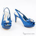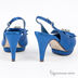Женские туфли на высоком каблуке с оригинальной пряжкой с открытым мысом и пяткой. Снаружи текстиль и внутри натуральная кожа. Вклеенная стелька.