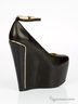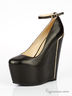 Шикарные туфли на высокой, оригинально оформленной танкетке, переходящей в платформу. Материал подкладки - натуральная кожа. На ноге модель фиксируется при помощи тонкого хлястика с пряжкой.