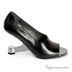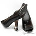 Необычные туфли из глянцевой кожи. Оригинальный устойчивый каблук, закругленный открытый мысок, подошва без протекции.
