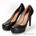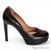 Классические туфли из гладкой глянцевой кожи. Невысокий каблук, открытая платформа, подошва без протекции.