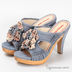 Летние открытые туфли из мягкого нубука. Толстый устойчивый каблук, невысокая платформа с низкой протекцией, без задника, простроченная кожаная стелька, спереди украшены декоративным цветком.