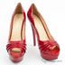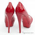 Лакированные туфли красного цвета на высоком каблуке. Подошва средней толщины, вклеенная стелька, сезон - лето.