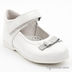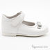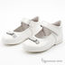 Изящные туфельки из белой лакированной кожи с застёжкой-липучкой. Декорированы бантом и стразами.