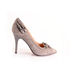 Если вы ищете оригинальные туфли, обратите внимание на эту пару от Svetski. Обилие деталей и сложный крой делают их очень притягательными. Многие детали имеют фестонный край и украшены небольшими металлическими заклепками. На мыске – композиция из металла, кристаллов и кожаного шнура. На боку – декоративные застежки с пряжками. В сочетании с классическим фасоном на высоком каблуке обувь выглядит очень свежо. Туфли выполнены из замши жемчужно-серого цвета, что придает им особый шик. Выбор неординарных женщин.