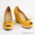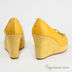 Оригинальные женские туфли из натуральной кожи желтого цвета. Платформа обшита замшей и соединена с изделием клеевым способом крепления. Открытый мыс декорирован бантиком. Подкладка из кожи. Стелька и внутренняя подкладка выполнены из кожи кремового цвета. На подошву нанесен небольшой протектор для повышенной устойчивости.