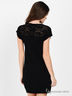 Детали: округлый вырез горловины, короткий цельнокроеный рукав, спинка дополнена гипюровой вставкой
