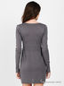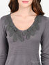Детали: v-образный вырез горловины декорирован шифоновым лепестками, длинный прямой рукав, отрезной низ изделия