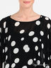 Детали: круглый вырез горловины, рукава - летцчая мышь, с небольшой триоктажной бейкой, оригинальная расцветка в горох.