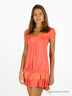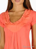 Туника свободного кроя. Овальный вырез горловины декорирован рюшей. Рукава-фонарики. На линии бедер кулиска с резинкой.