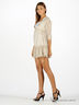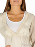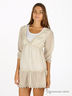 Комплект из туники и топа внутри нее. Топ-борцовка из тонкого трикотажа. Туника свободного кроя из тонкой шелковой ткани с широким V-образным вырезом горловины с оригинальной обработкой. рукава 3/4. Под грудью и на линии бедер проходит кулиска и завершается изящными бантами по бокам. Низ изделия обработан широкой кружевной тесьмой.
