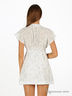Туника приталенного кроя из тонкой нежной ткани. V-образный вырез горловины. Цельнокроеные рукава. Горловина обработана резинкой, застегивается на пуговицы, вырез декорирован ажурной тесьмой. Под грудью многорядная резинка. Двухслойная юбка. Края юбки декорированы широкой тесьмой.