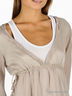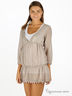 Комплект из туники и топа внутри нее. Топ-борцовка из тонкого трикотажа. Туника свободного кроя из тонкой шелковой ткани с широким V-образным вырезом горловины с оригинальной обработкой. рукава 3/4. Под грудью и на линии бедер проходит кулиска и завершается изящными бантами по бокам. Низ изделия обработан широкой кружевной тесьмой.