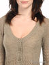 Детали: застежка на пуговицы, длинный прямой рукав и низ изделия декорированы ажурной вязкой