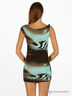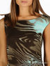 Элегантная туника необычного кроя. На одной лямке декоративный элемент в виде металлической трубки. По бокам сборки.