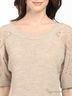 Детали: короткий рукав декорирован вязкой "листья", низ изделия на резинке в рубчик