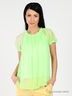 Детали: округлый вырез горловины на резинке, короткий рукав "фонарик", нижний край изделия украшен тесьмой